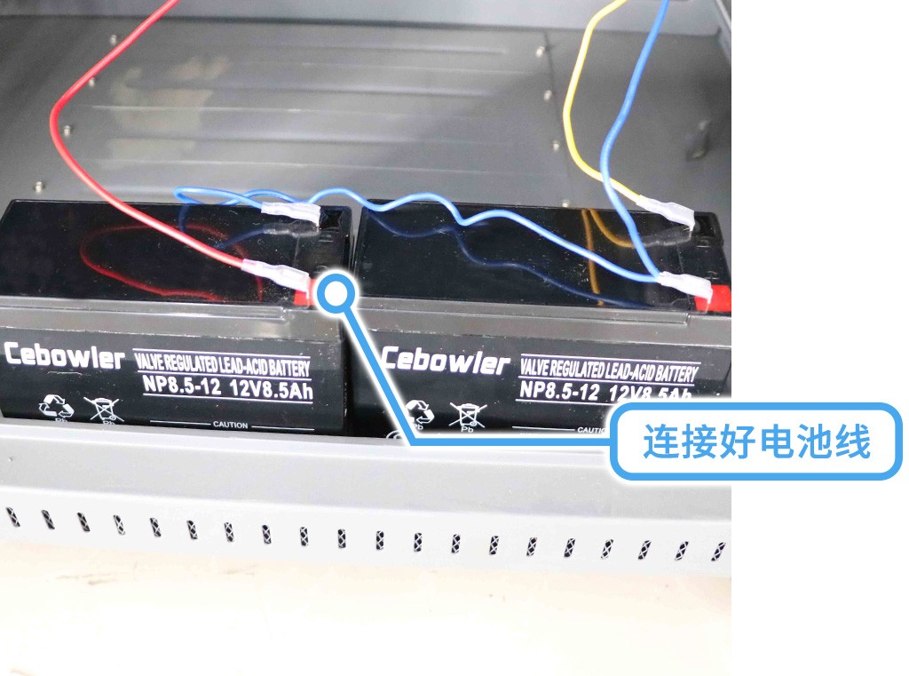 连接好电池线,两节电池是串联的,红线接正,黄线接负,蓝线接两头中间;